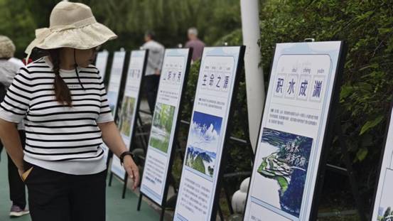 贵阳市观山湖公园的天鹅湖畔,一场持续30天的“节水静态科普展”用创新方式传播节水理念。“成语新解”让硬核知识变得生动有趣:“生命之源”展示贵阳人均水资源占有量;“惜水如金”亮出节水型社会建设成绩;“细水长流”见证海绵城市建设成果。这种寓教于乐的方式,让市民在休闲中接受节水教育。