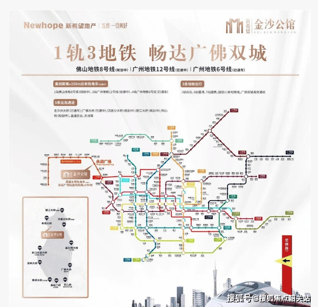 项目构建“四桥三铁一轨”立体交通网络,高效串联广佛双核。楼下约150米即为有轨电车永润广场站(在建),未来可无缝换乘广州地铁6号线号线号线(规划中);自驾方面,通过金沙洲大桥、广佛大桥、沉香沙大桥(规划中)等5座过江通道,15分钟内直达白云、荔湾核心区。根据最新广佛交通规划,两地将建设80条衔接道路,实现市中心30分钟互达。对于广佛“候鸟族”而言,金沙公馆不仅缩短通勤时间,更大幅提升生活效率与幸福感。