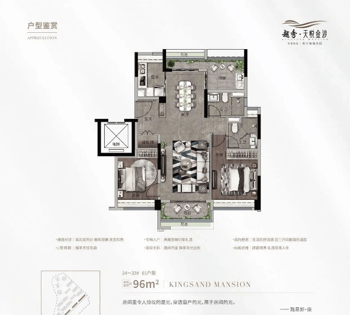 作为现房,越秀天悦金沙的所有优势都能实地考察:房子的户型、采光、视野、装修品质,社区的园林、设施、物业服务,都能亲眼看到、亲身感受,不用再靠想象,也不用担心 “货不对板”。无论是 95㎡的小高层三房,还是 160㎡的湖景四房,都能实地查看,选到自己心仪的房子。