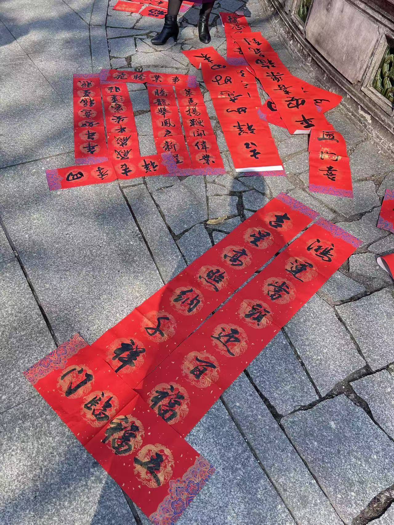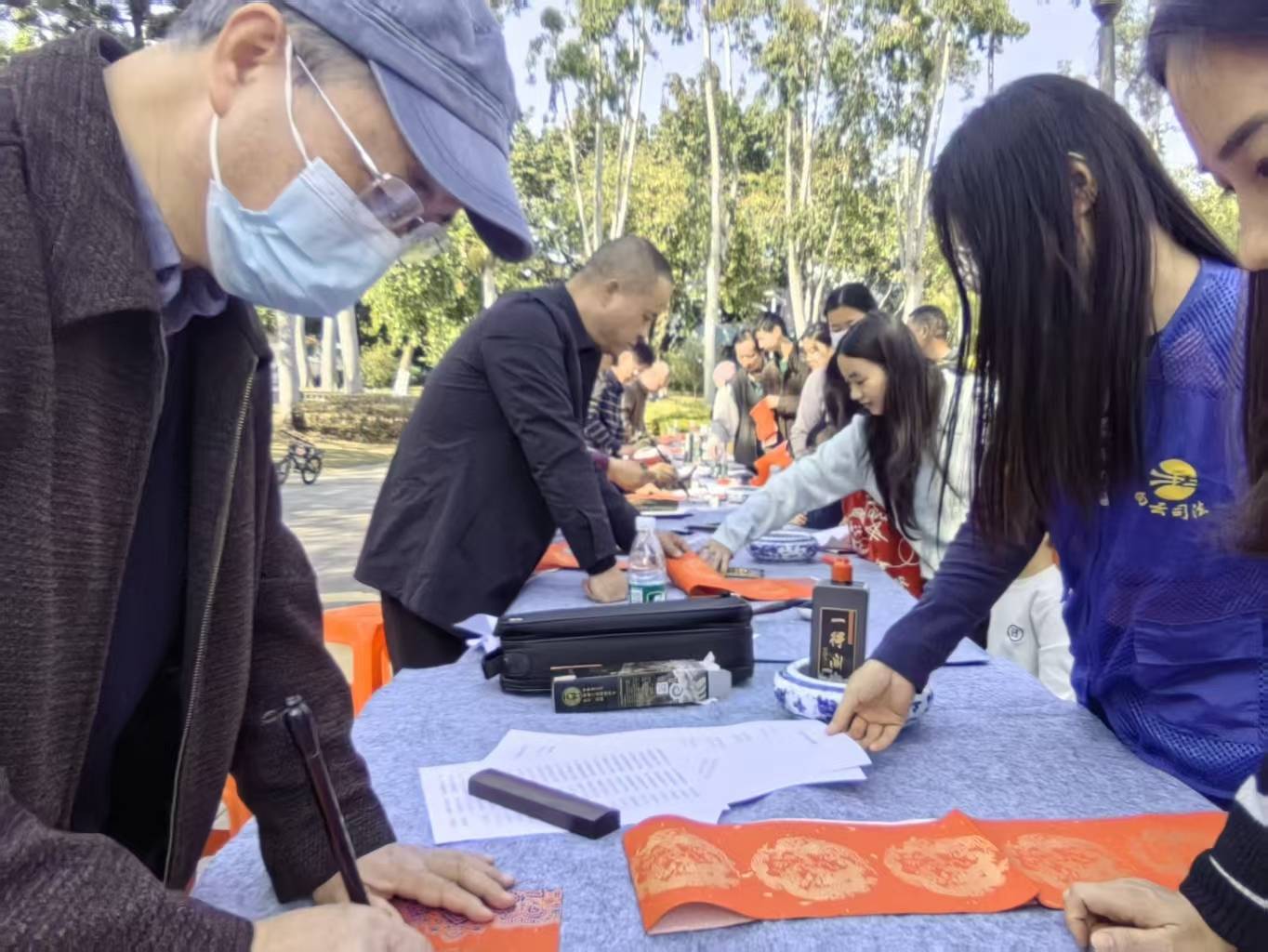 “书法家写的春联更有年味、更有温度!”捧着还散发墨香的春联,社区居民陈伯笑逐颜开,“这比印刷的春联有意义多了,我要把这副‘天增岁月人增寿,春满乾坤福满门’贴在大门上,讨个好彩头。”