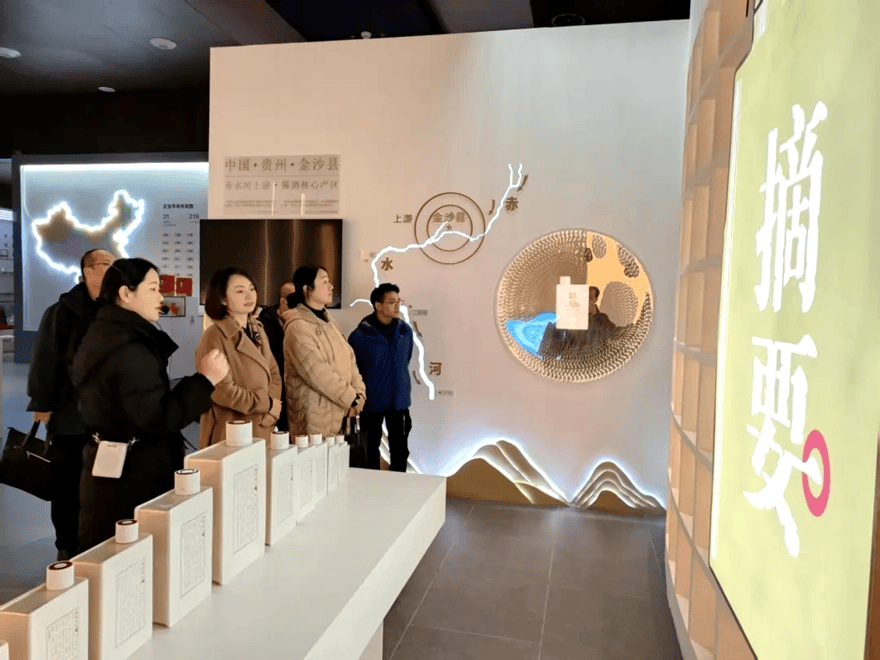 饶萍一行参观了企业酱酒文化展览馆,通过馆内丰富的展品和详细的介绍,系统了解了酱酒的发展历史以及金沙产区的独特优势,对企业的文化底蕴和产业特色有了更直观、更深入的认识。