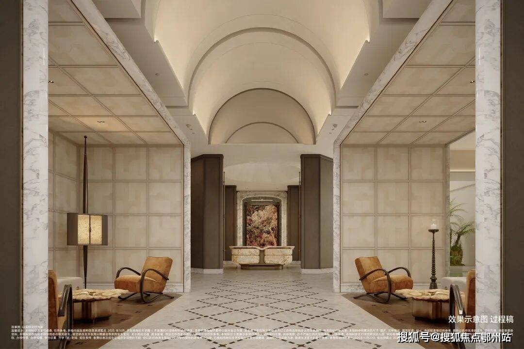 小区采用全人车分流设计,主入口位于西侧佑仁路,通行便捷有序。大门庄重大气,门头通过横向感拉槽与奢石景墙巧妙结合,搭配序列感植物,营造秩序感与昭示性。主入口三进式礼序,仪式感与功能性兼备。一进为酒店式落客和车马厅,以礼遇之姿迎接业主归家,大堂尽显尊崇;二进静谧水院、会客廊架、下沉庭院相互呼应,形成意境洄游空间;三进风雨连廊相伴,带来伴水归家惬意体验。次入口在东侧,方便出行。