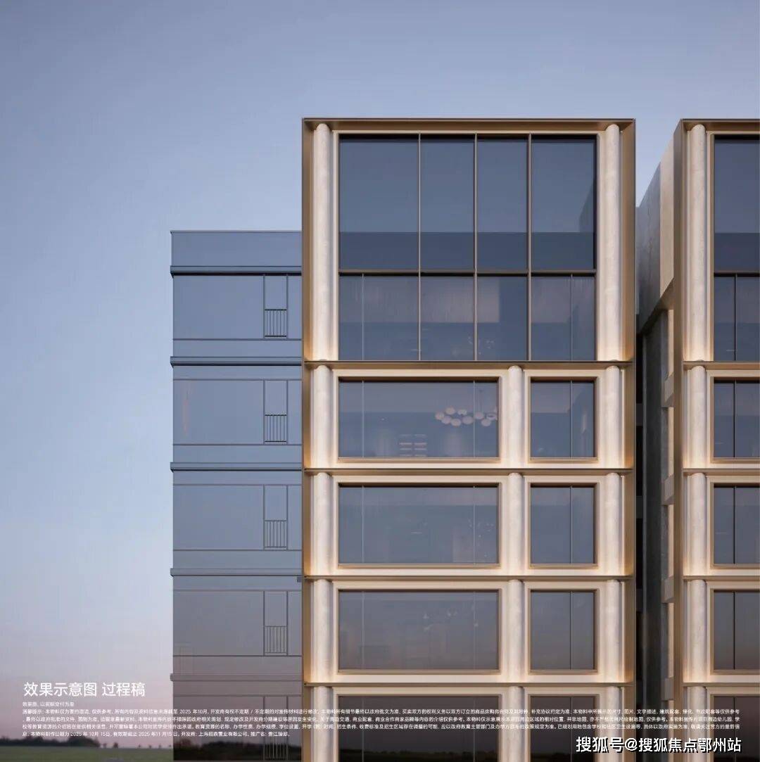 材质:局部温润石材、仿铜铝板、仿石铝板及局部仿石涂料,竖向铝板提升品质感