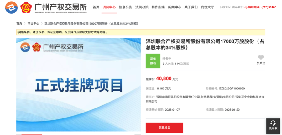 2026-01-14金沙娱乐,金沙娱乐城官网,金沙娱乐城app,金沙娱乐城,金沙集团官网,金沙娱乐城注册,金沙官网,金沙app,澳门金沙娱乐城官网,金沙网站,金沙官网,金沙集团,澳门金沙官网,澳门金沙网站,澳门金沙注册1月14日,21世纪经济报道记者注意到,深圳联合产权交易所股份有限公司(简称“深圳联交所”)1.7亿股股份(占总股本的34%股权)项目在广州产权交易所公开挂牌转让,挂牌价为4.08亿元。