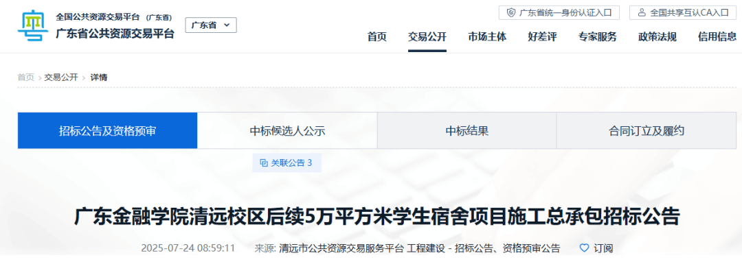 根据广东省公共资源交易平台7月消息,广金清远校区将建4栋宿舍楼,建筑面积约5万平方米,施工总工期为480日历天。