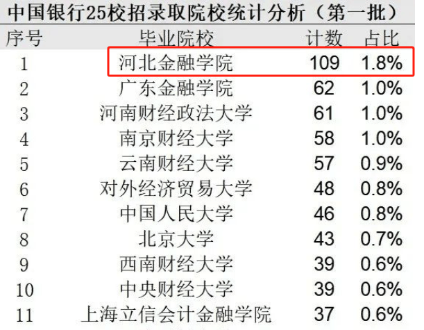 另外非常值得一提的是,在中国银行2025年第一批校招录取中,河北金融学院以录用109人的成绩位列全国高校第一。